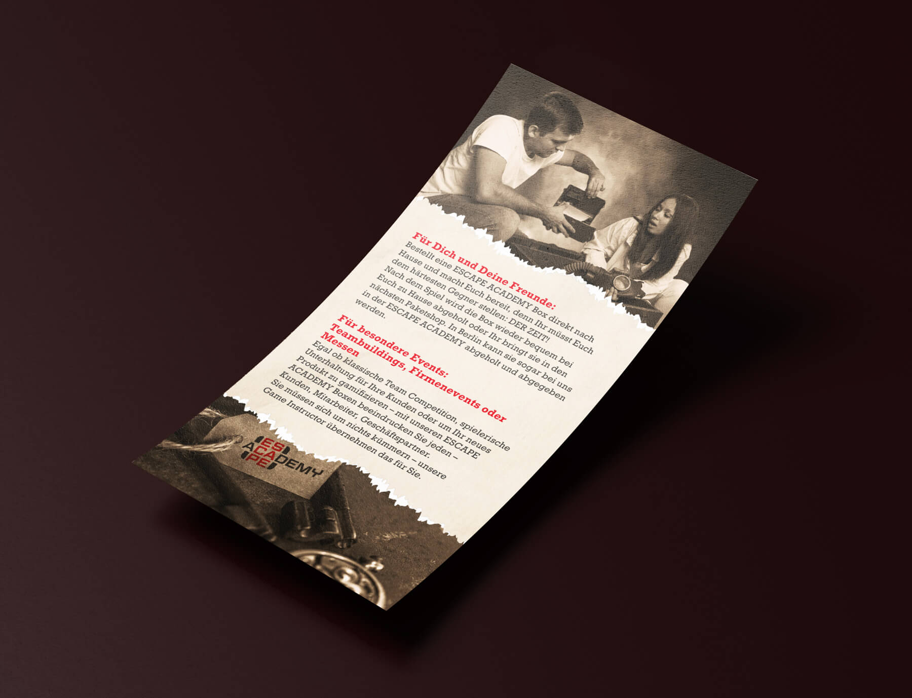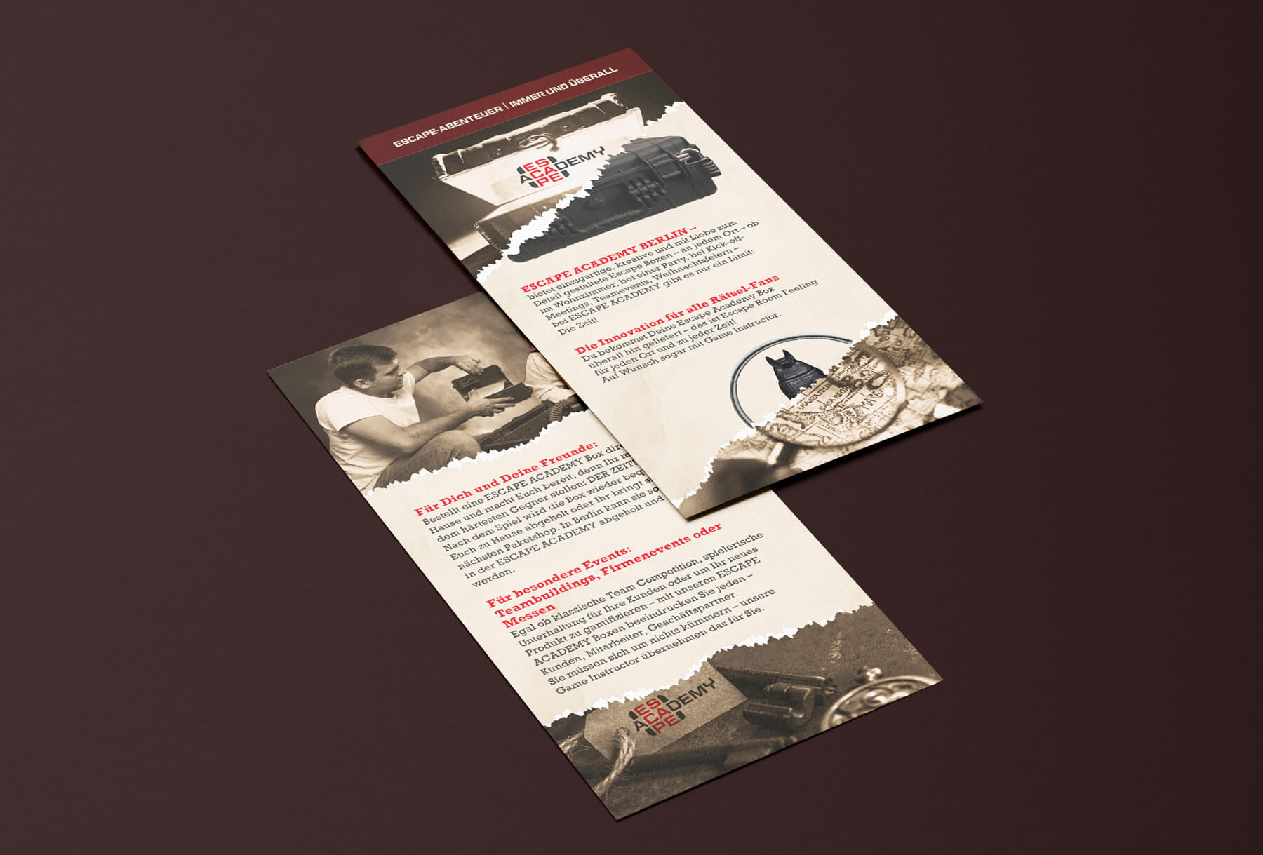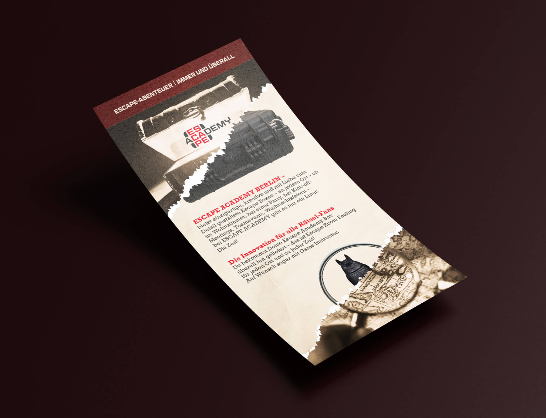 Die Aufgabe war es für das Unternehmen Escape Academy ein neues Corporate Design zu erstellen in Form eines Flyers.