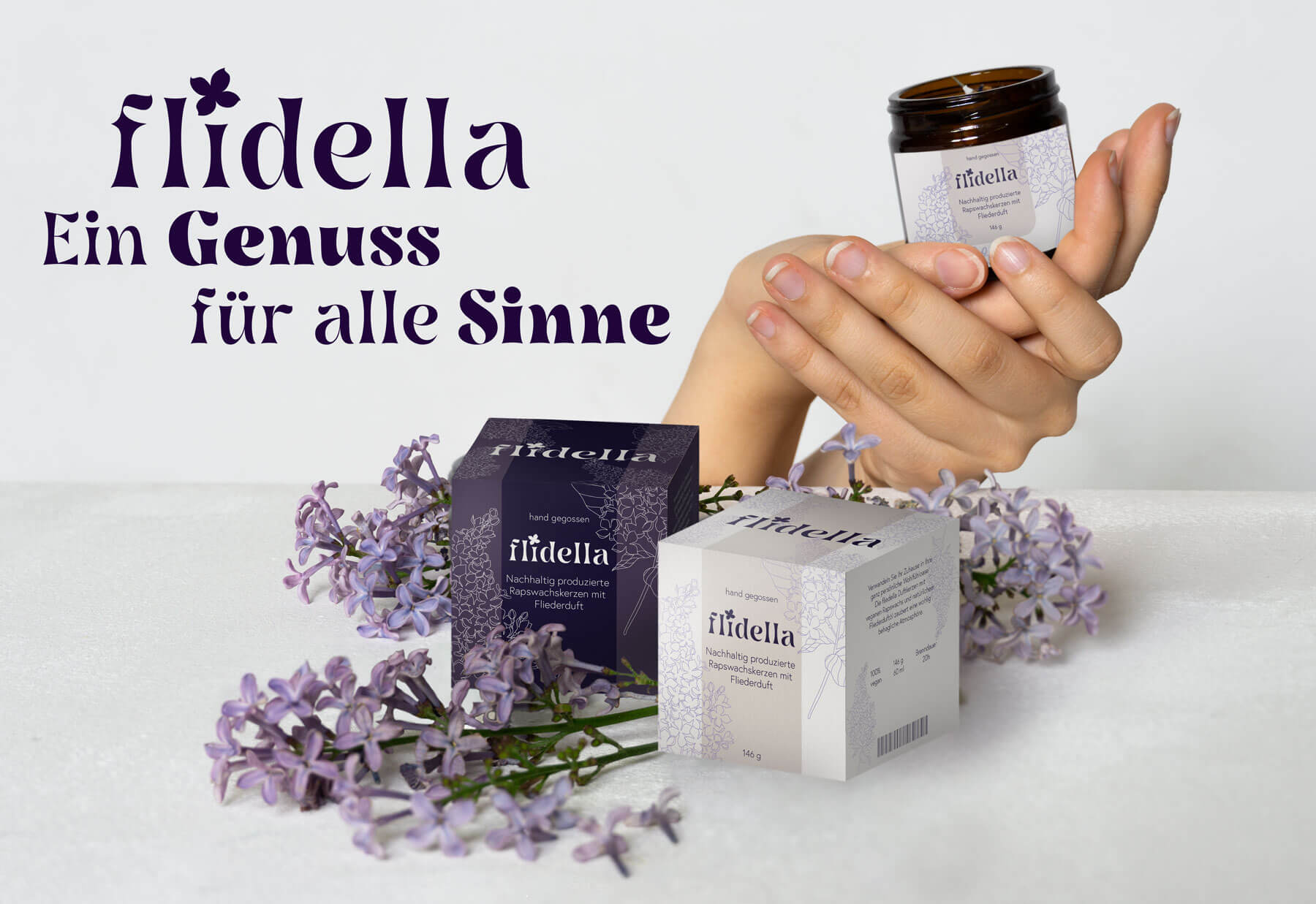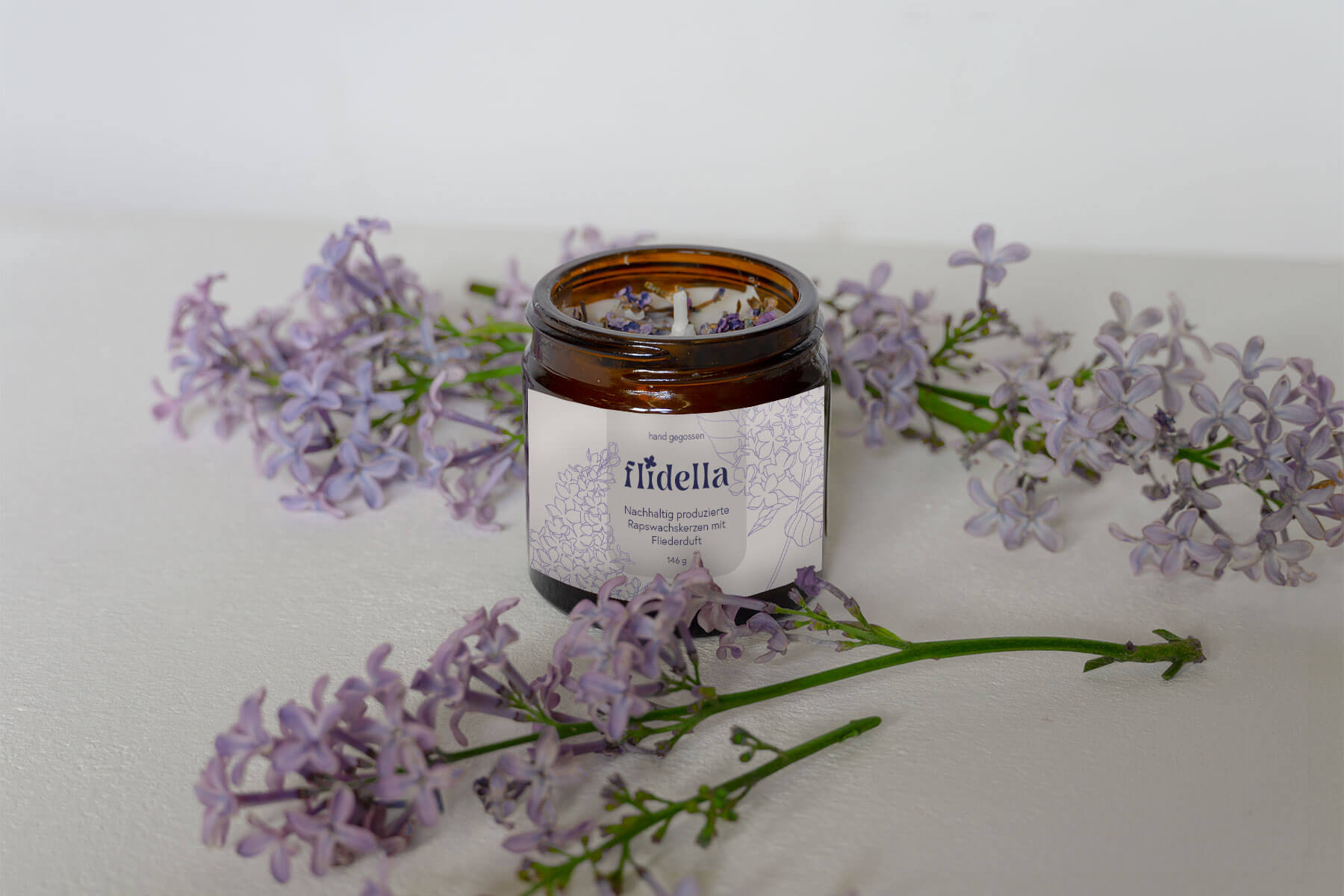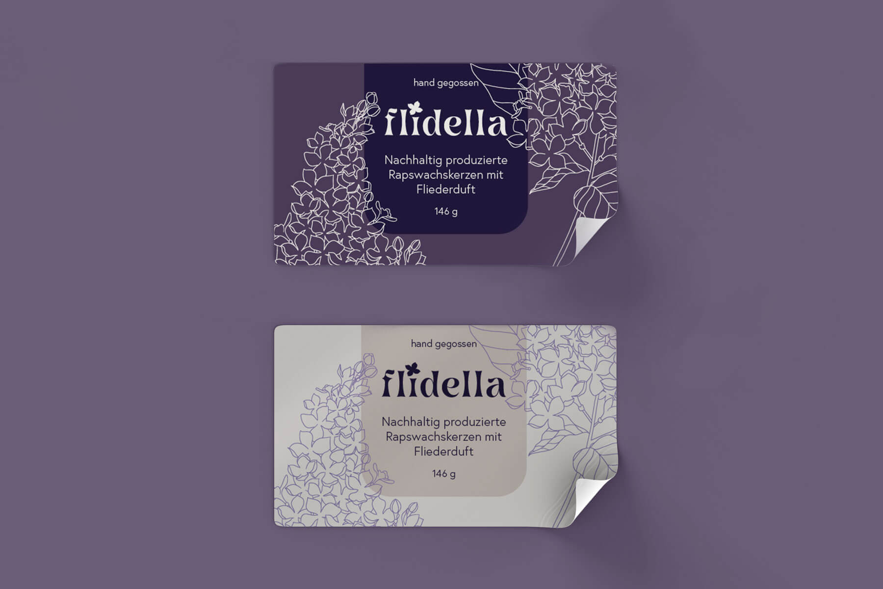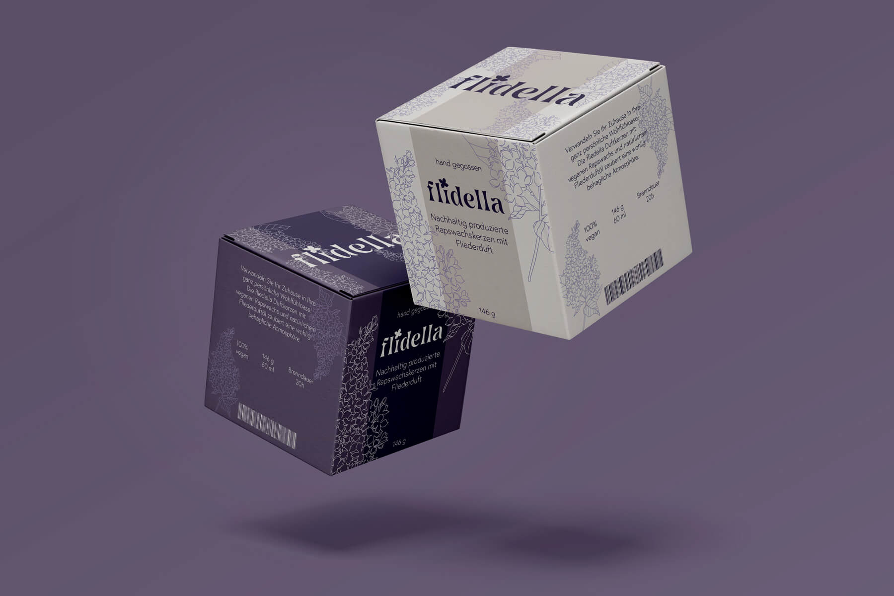 Das packaging Design präsentiert ein Stickerdesign mit einer passenden Verpackung in jeweils zwei Farben, da die Kerzen auch in zwei Varianten erhältlich sind.