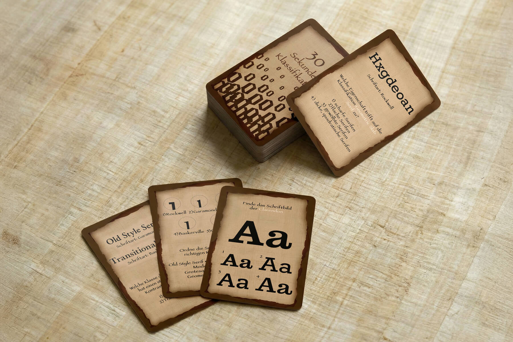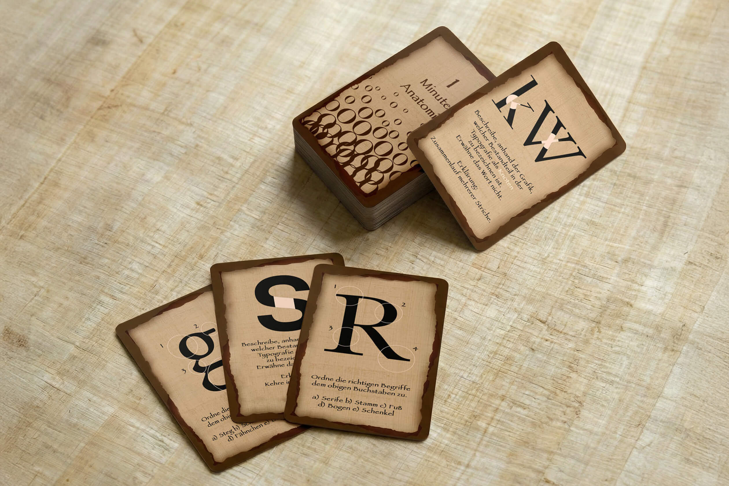 Im Rahmen meiner Abschlussarbeit konzipierte und entwickelte ich ein didaktisches Brettspiel, das typografisches Wissen spielerisch vermittelt. Das Spiel führt durch acht Schriftklassen und vermittelt das Fachvokabular der Schriftanatomie auf zugängliche und unterhaltsame Weise.